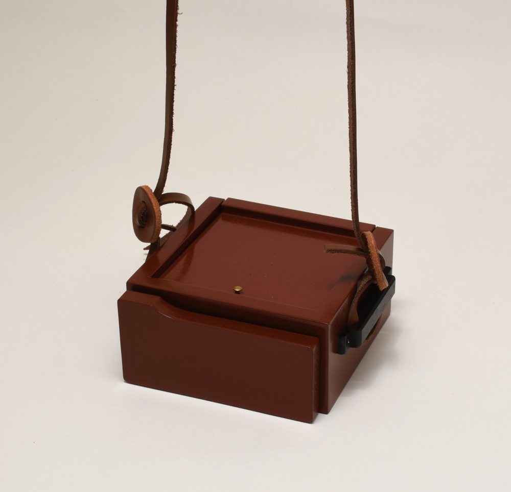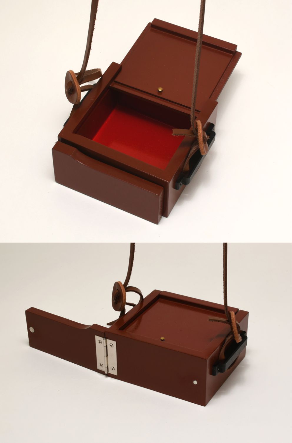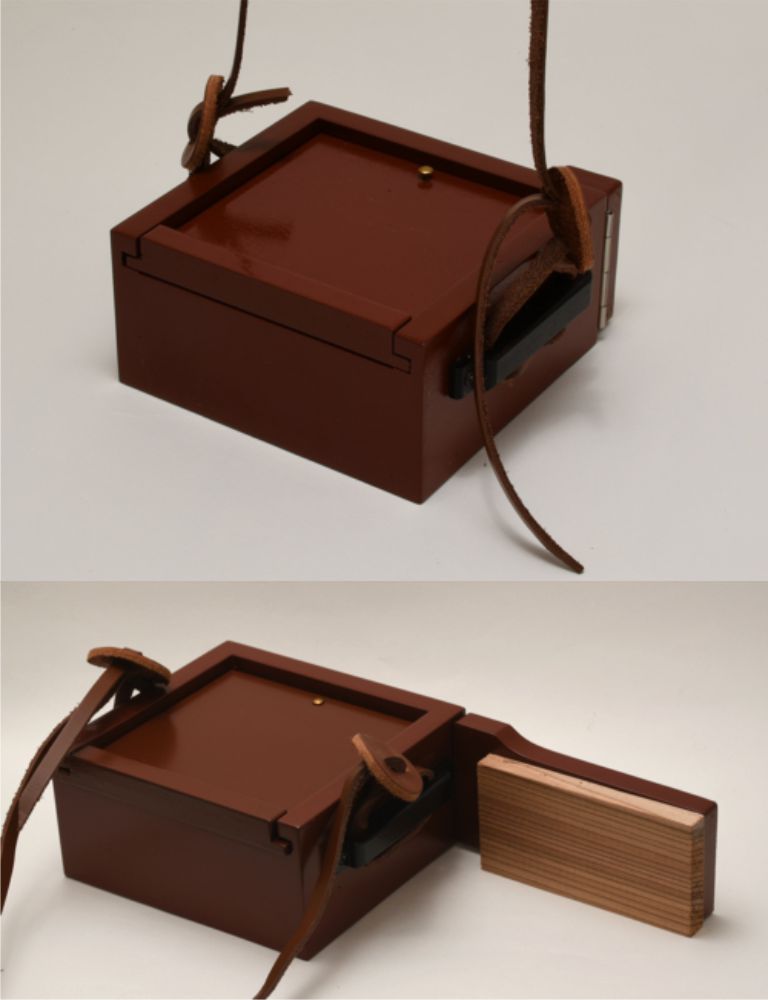 外寸: W10 x D9.4 x H5cm(折り畳み部を除く外寸) 内寸: W8.3 x D7.7 x H3.4cm 自重:160g 材料: 杉、ヒノキ、黒檀 ウレタンコーティング