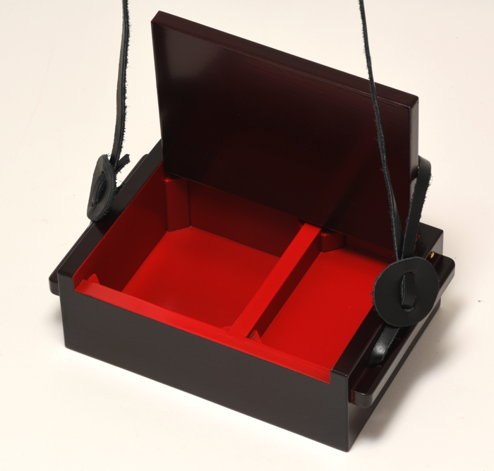 ハゼ釣りならイソメとホタテ、鮒釣りならミミズと赤虫など、2種類の餌の使い分けに有効な餌箱です。小さな餌を取り出しやすいよう、全体を浅く、仕切りの左右を深さ違いに設計しました。本革製のストラップは、長さ調整が容易に行えることはもちろん、容易に取り外すことが可能。陸っぱりの釣りの他、舟べりに置いても安定する形状で、使うシーンを選びません。