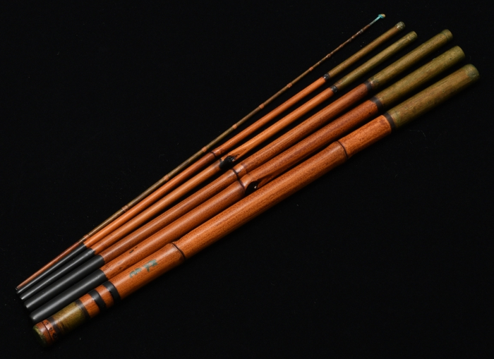 俊秀作 タナゴ竿 6寸元 7本継 105cm 茶虫喰い塗り