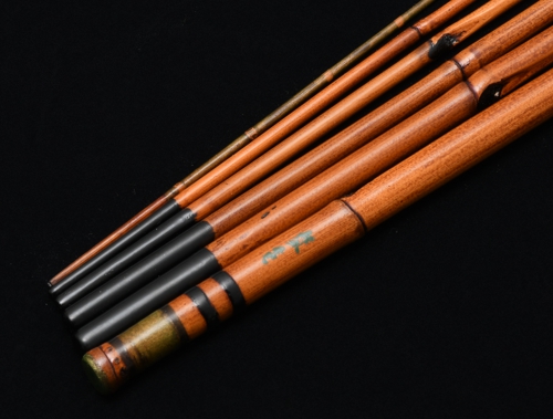 俊秀作 タナゴ竿 6寸元 4本継 64cm 高野竹 二節入 茶虫喰い塗り 黒竹ケース付