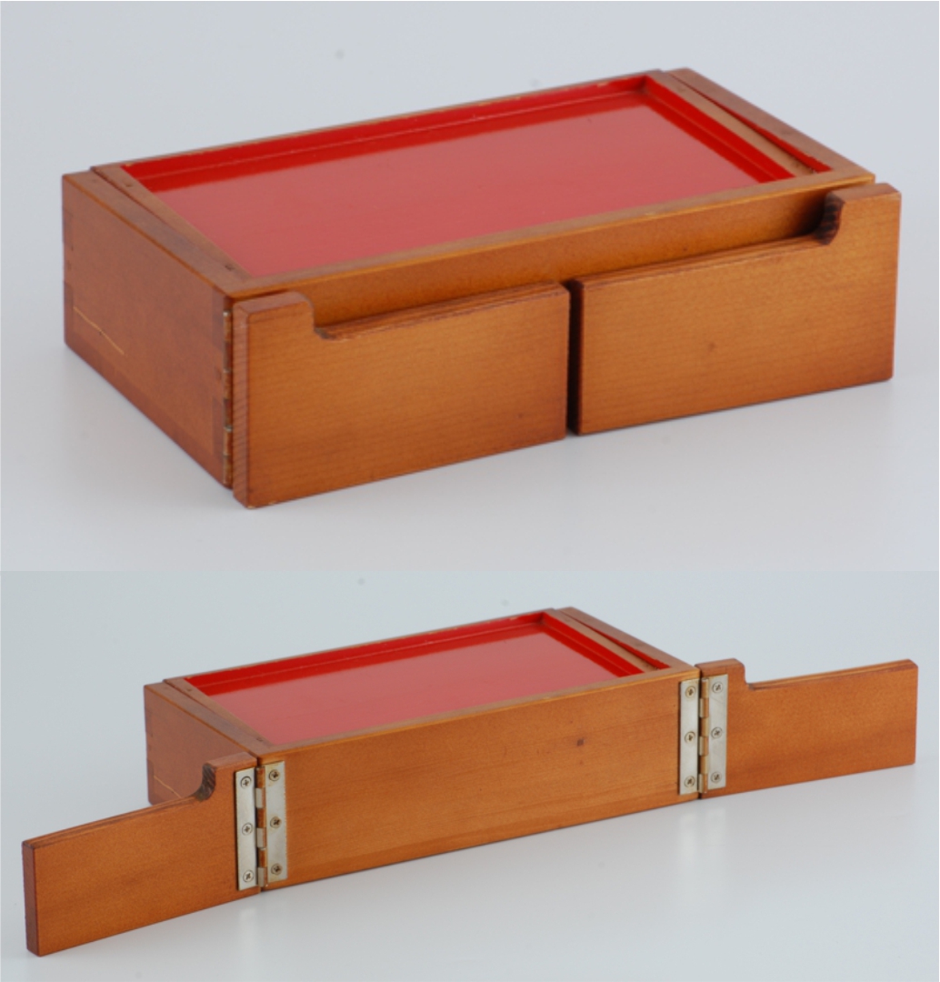 箱孝作のハゼの船釣り用の餌箱が入荷しました。関釣具店謹製のあて木も付属。使用感が少なく、程度の良い中古品です。