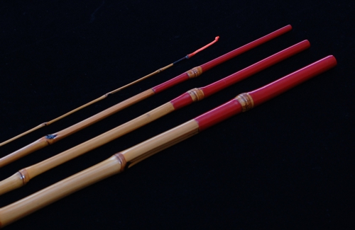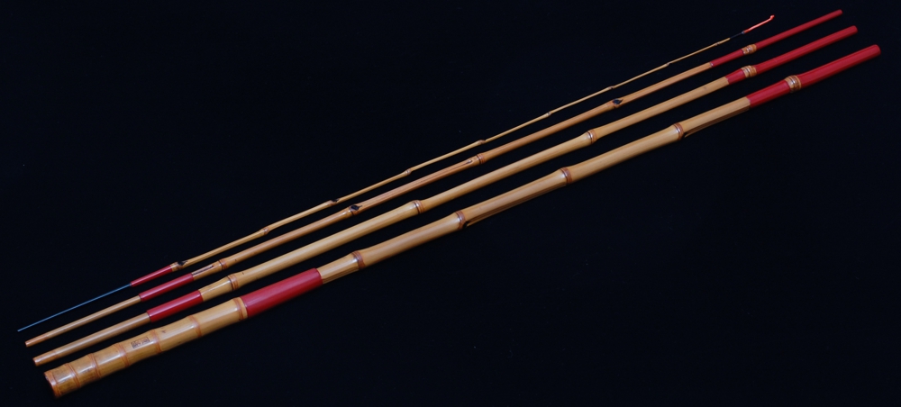 布袋竹で誂えた使いやすい長さの万能竿です。布袋竹ならではの張りを持ちながら、曲げればしっかりと胴に乗ります。真鮒のほか、ハゼ、タナゴなどの小物釣りまで、様々な釣りでお使いいただけます。コンディションの良い中古品です。