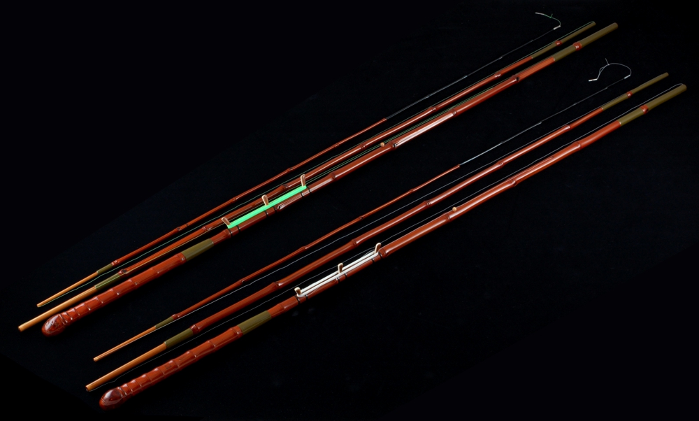 竿かづ 特選 中通し鯊布袋一対竿 3本継 9尺 淡竹根堀手元 オモリ負荷 3-4号
