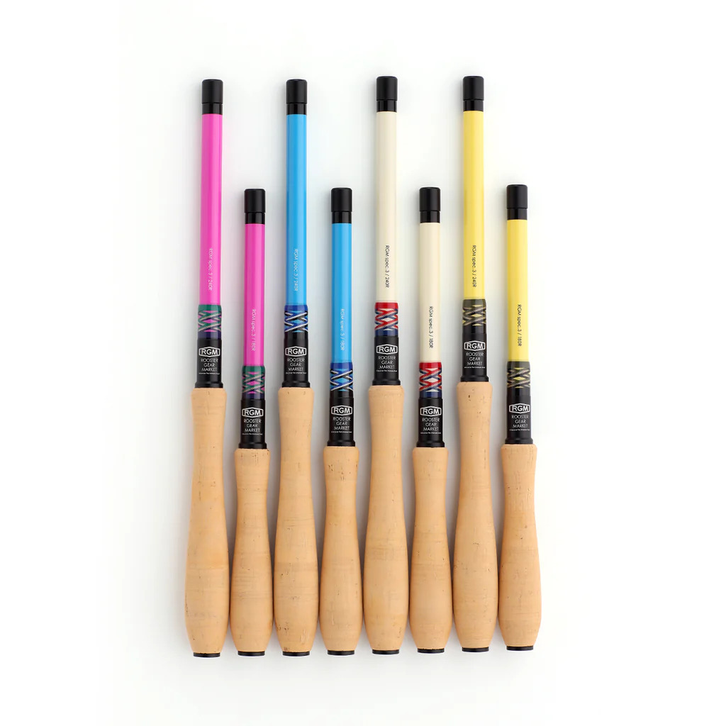 軟らかめの小物竿です。在来のタナゴや小鮒、ハゼの他、手長エビやテンカラ釣り使っても面白い調子に仕上がっています。全長と仕舞寸法の関係で180Rと240Rでは調子が大分異なり、180Rは7:3から6:4程度の本調子、240Rは6:4から5:5程度の胴調子です。