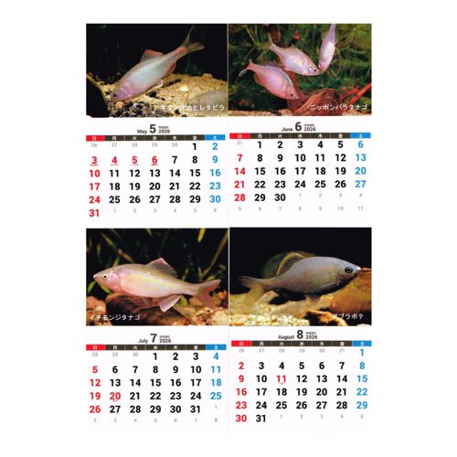 2026年度版の卓上タナゴカレンダーです。撮影は「月刊つり人」でおなじみの熊谷正裕氏。12種類の美しいタナゴのスナップショットが月替りで楽しめます。贈答品としてもおすすめです。