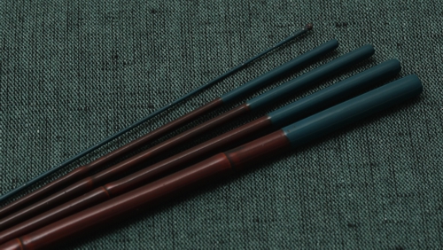特注の極細グラス素材と矢竹を適宜組み合わせて製作したタナゴの合成竿です。仕上げの本漆や揃い節等、和竿の作りはそのままに、グラスの利点を取り入れることで短竿でありながら掛ければしっかりと曲がる調子を実現しました。グラスの穂持ちは竹素材を上回る十分な強度と柔軟性を持ち、不意の外道に対しても安心してご使用いただけます。和竿そのものの使用感と素材の組み合わせが生み出す釣り味を是非お楽しみください。
