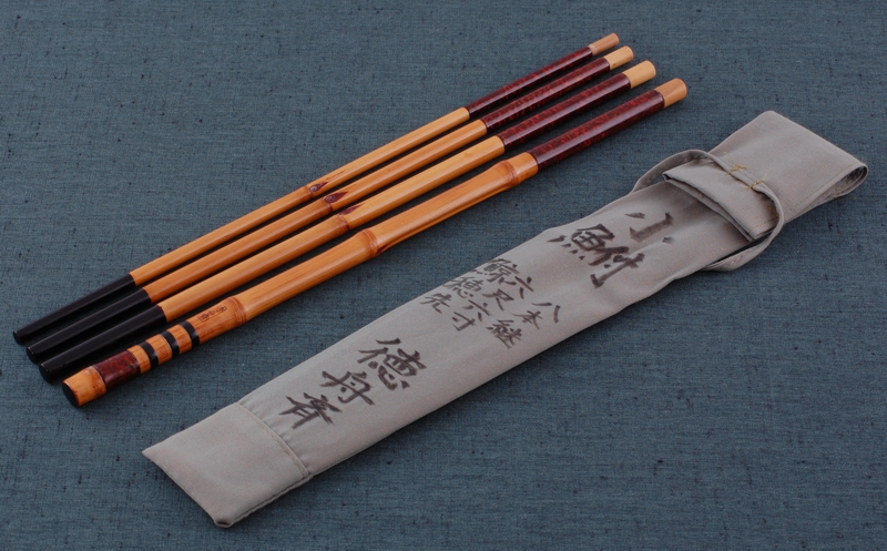 節の詰まった矢竹を主材として製作したタナゴ竿です。細身の素材を選び、しなやかな調子を生み出しています。黒竹の専用ケース付きです。
