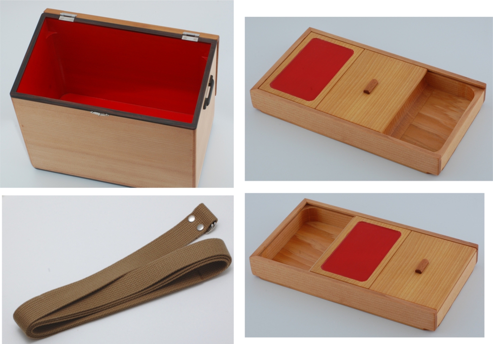 素材: 榧、屋久杉、黒檀外寸: W29×D16.5×H24cm内寸: W27×D15×H21.5cm自重: 1535gストラップ付属