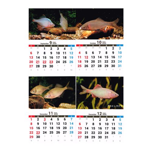 2026年度版の卓上タナゴカレンダーです。撮影は「月刊つり人」でおなじみの熊谷正裕氏。12種類の美しいタナゴのスナップショットが月替りで楽しめます。贈答品としてもおすすめです。