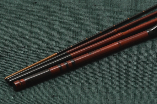 極細のグラス素材と矢竹を組み合わせて製作した中通しのタナゴ竿です。素材を適切に組み合わせることで、中通し竿でありながら、削り穂と変わらない使用感を実現しました。穂先からしっかりと曲がり込み、必要十分な強度も備えています。外道に穂先を奪われる心配もありません。手元の糸巻は黒檀を削り出して製作。釣り場の地形や水深に合わせて簡単に仕掛全長を調節できます。仕上げの本漆や揃い節等、和竿の作りはそのままに、素材の組み合わせが生み出す機能と使用感を是非お楽しみください。