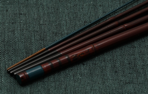 特注の極細グラス素材と矢竹を適宜組み合わせて製作したタナゴの合成竿です。仕上げの本漆や揃い節等、和竿の作りはそのままに、グラスの利点を取り入れることで短竿でありながら掛ければしっかりと曲がる調子を実現しました。グラスの穂持ちは竹素材を上回る十分な強度と柔軟性を持ち、不意の外道に対しても安心してご使用いただけます。和竿そのものの使用感と素材の組み合わせが生み出す釣り味を是非お楽しみください。